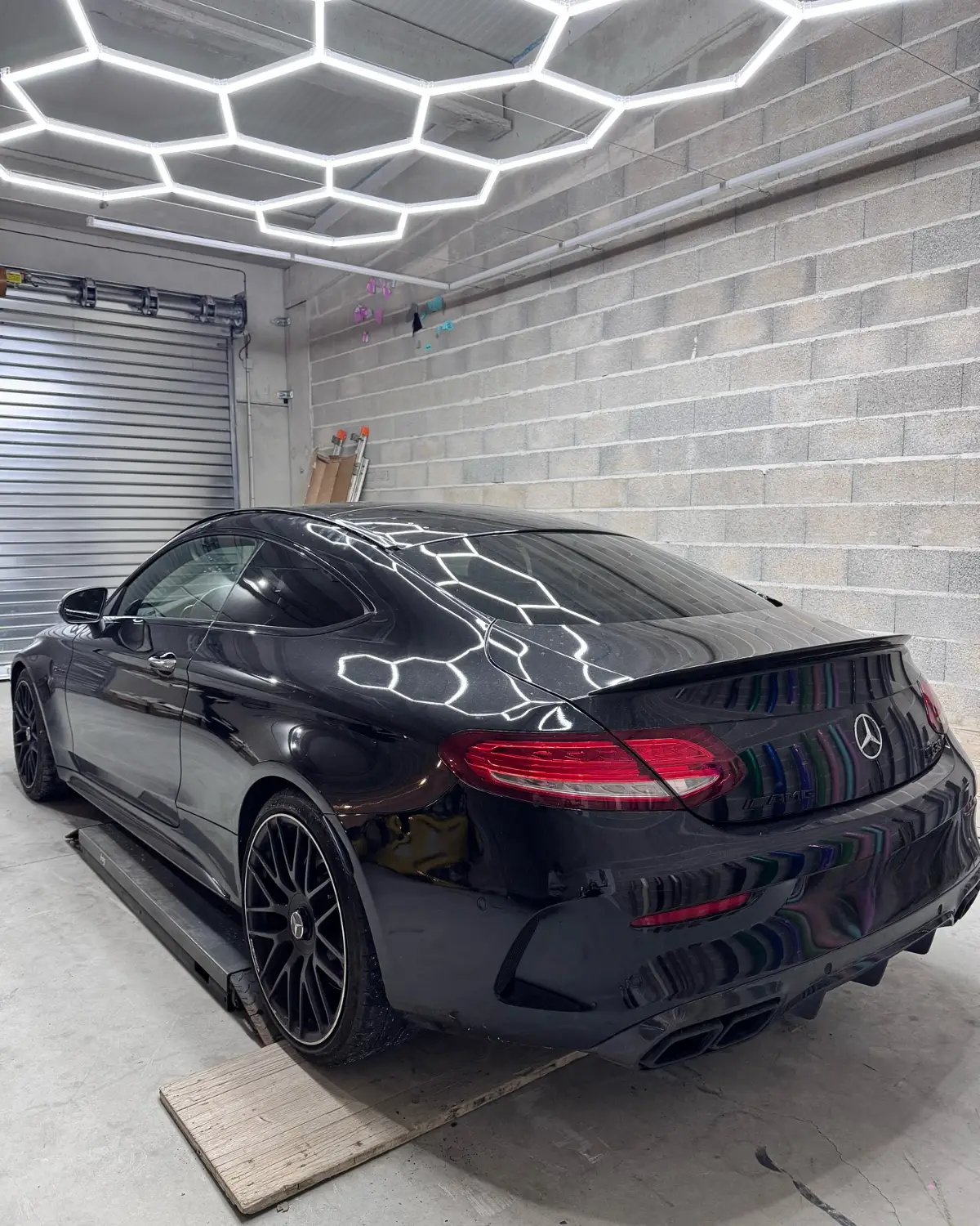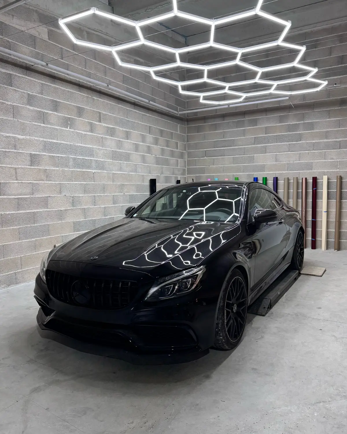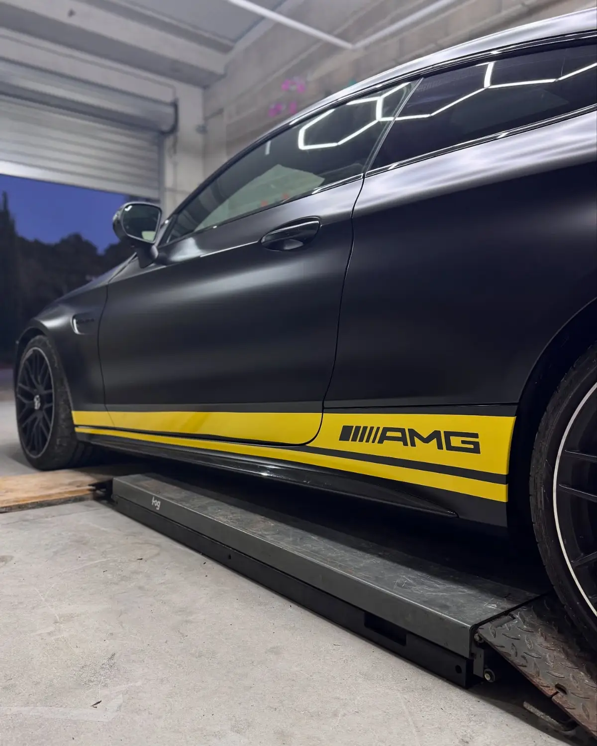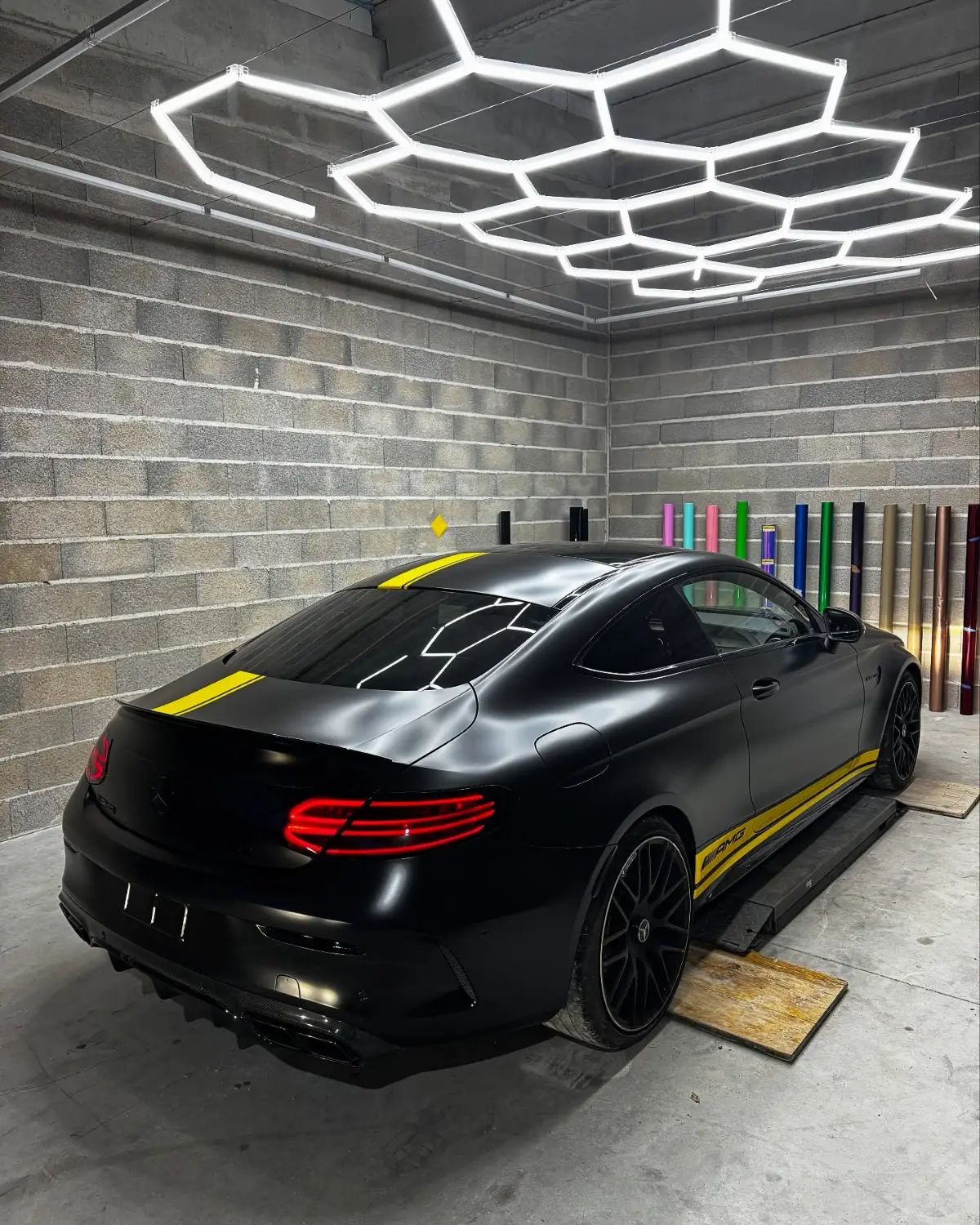Mercedes Classe C 63 AMG Covering Noir Satin Bande Jaune Style Édition One Feux Teintés + Catadioptres